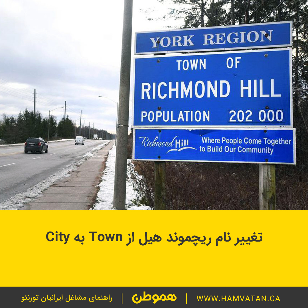 پس از رای گیری شورای شهر نام ریچموند هیل از Town به City تغییر یافت. ریچموند هیل بیش از 200 هزار نفر جمعیت دارد و سومین منطقه پر جمعیت York Region است.