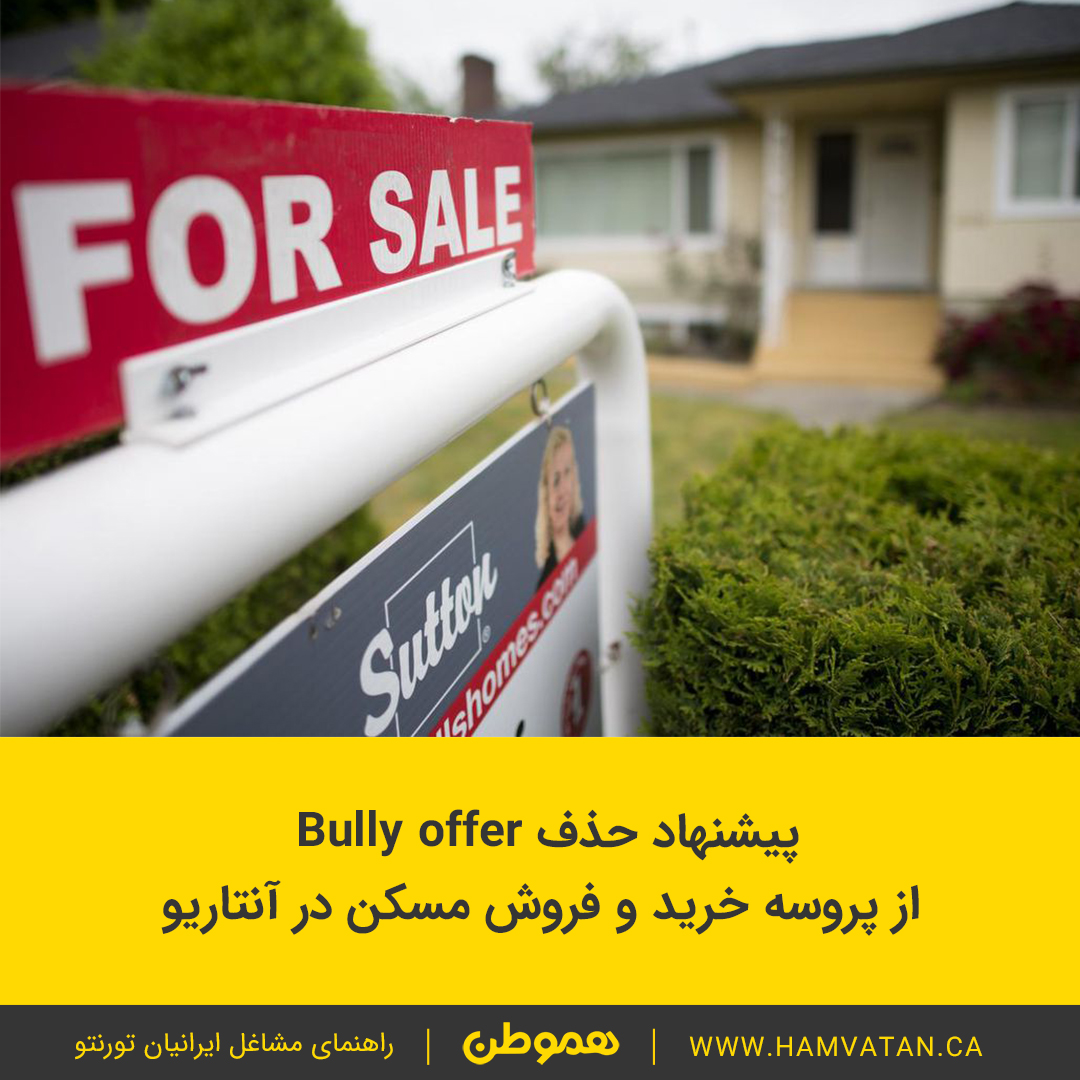 برخی از مشاوران املاک آنتاریو خواستار حذف Bully offer از پروسه خرید و فروش مسکن هستند. آن ها معتقدند این موضوع امتیاز ناعادلانه ای به برخی خریداران می دهد.