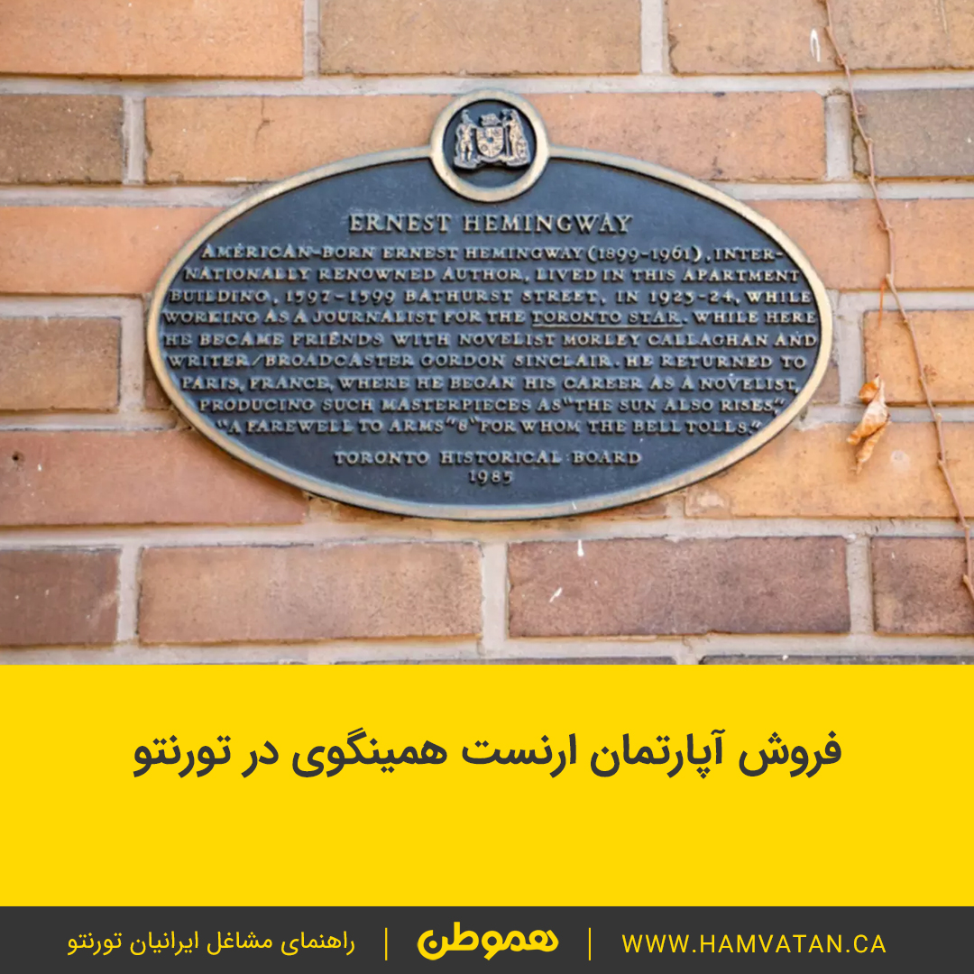 آیا می دانید ارنست همینگوی حدود شش ماه در تورنتو زندگی کرده است؟ او در سال 1923 در خیابان Bathurst تورنتو ساکن بوده است.