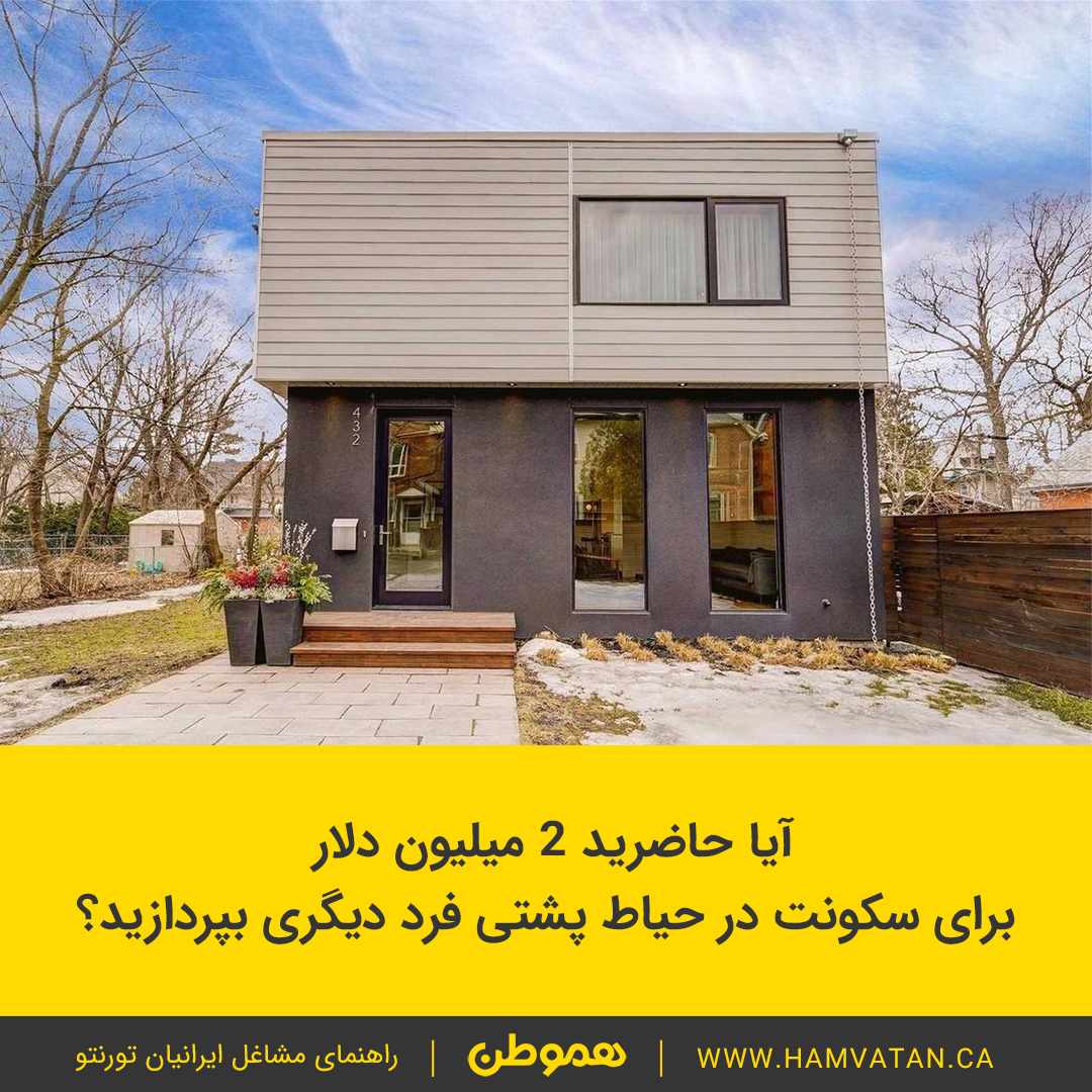 در شهر شلوغ و گران تورنتو خانه هایی با اصطلاح coach house جدیدا محبوب شده اند. این خانه ها در واقع خانه های مستقلی هستند که در پشت ملک شخص دیگری قرار دارند.