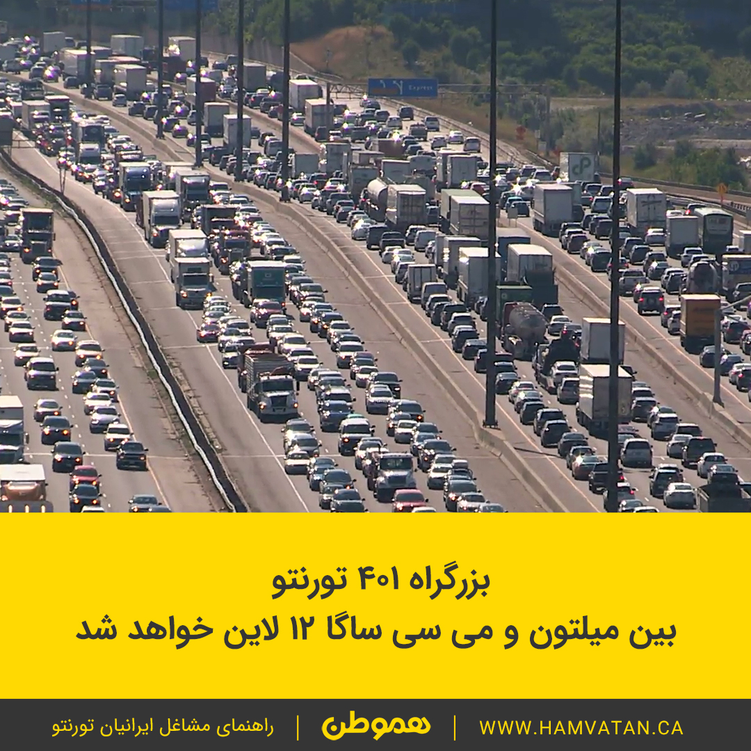 بزرگراه 401 تورنتو بین میلتون و می سی ساگا 12 لاین خواهد شد