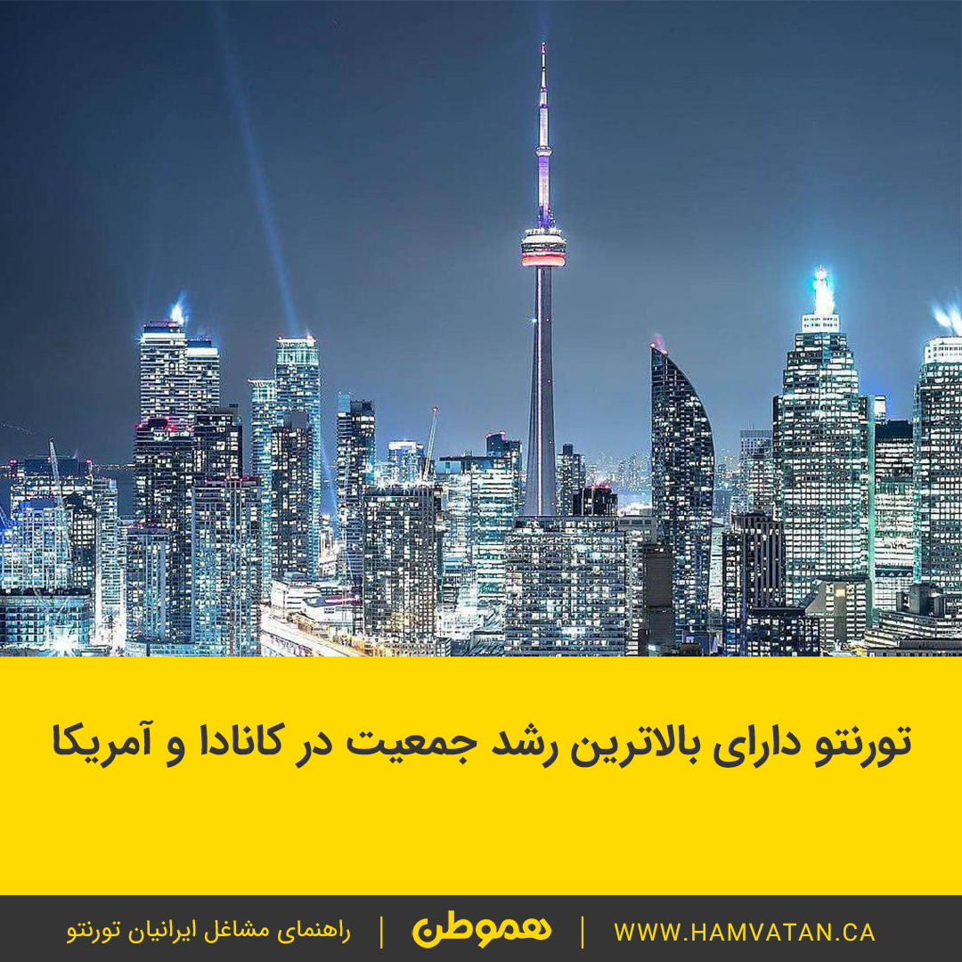 تورنتو سریع ترین رشد جمعیت را در میان شهرهای کانادا و ایالات متحده دارد. در سال 2018 حدود 77 هزار نفر به جمعیت تورنتو اضافه شده که تقریبا سه برابر شهر فینکس آریزونا است که در رده دوم قرار دارد.