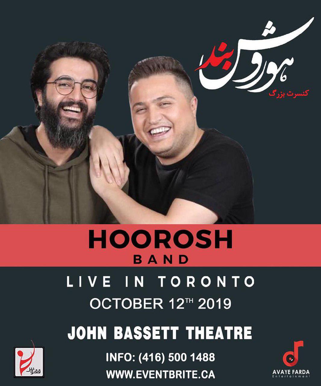 هوروش بند قرار است در تاریخ 12 اکتبر در تورنتو کنسرت اجرا کند. دوستانتان را از این ایونت با خبر کنید.