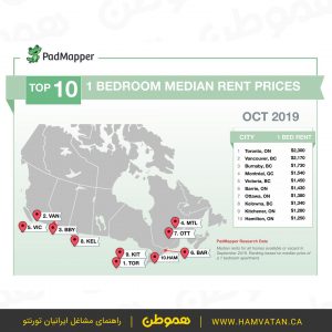 میانگین اجاره بهای مسکن در شهرهای کانادا برای اکتبر ۲۰۱۹ منتشر شد. هزینه اجاره بها در ۱۵ شهر کانادا افزایش یافته، اما در شهرهای تورنتو و ونکوور افزایش چندانی نداشته است.