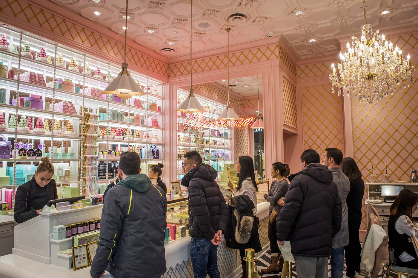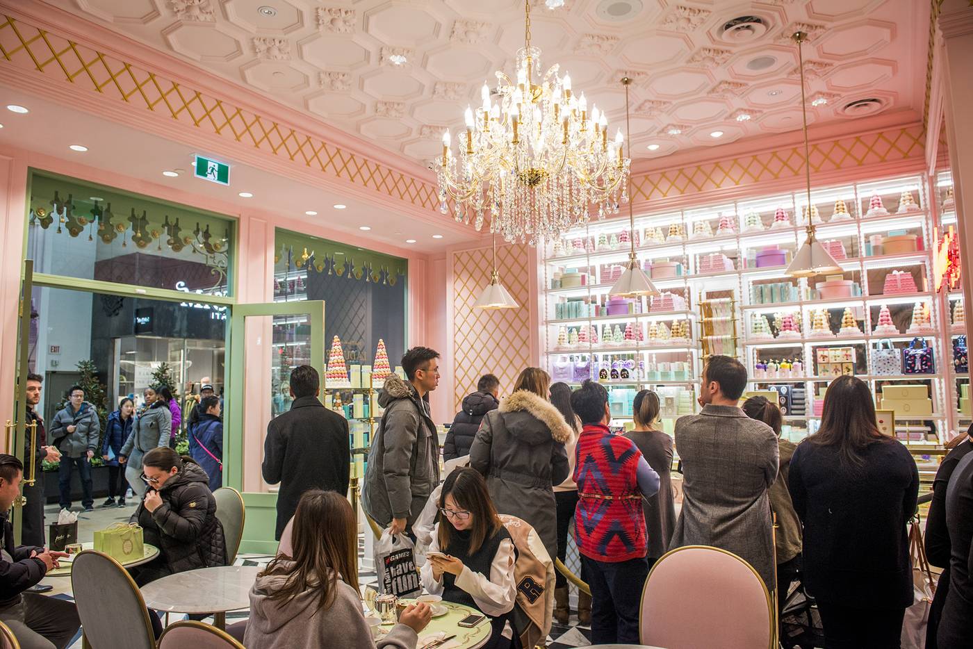 فروشگاه شیرینی Laduree در مرکز خرید “یورکدیل” تورنتو قرار دارد. این برند لوکس فرانسوی حدود ۱۵۷ سال در جهان قدمت دارد. شیرینی های ماکرون Laduree بسیار معروف است. ماکرون نوعی شیرینی فرانسوی است که دو لایه دارد و مغز آن شکلات، مربا یا خامه است.