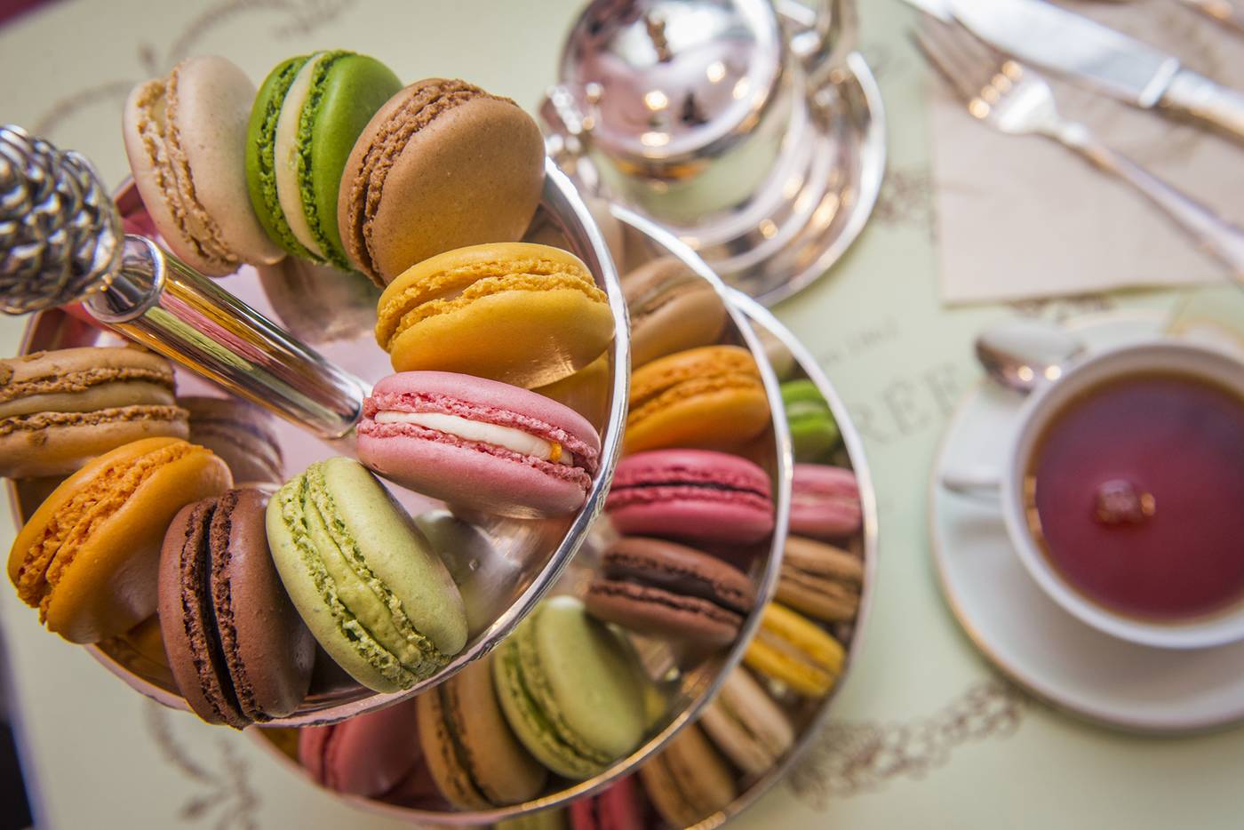 کافه و فروشگاه Laduree بسیار شیک و خوش آب و رنگ طراحی شده. رنگ های صورتی و سفید و مغز پسته ای، حالتی فانتزی به فروشگاه و کافه داده. قیمت هر ماکرون ۳.۳۰ دلار است و طعم های مختلفی مثل قهوه، پسته، لیمو و غیره دارد. انواع نوشیدنی های گرم، کیک های فرانسوی، ساندویچ و املت فرانسوی نیز در کافه Laduree سرو می شود.