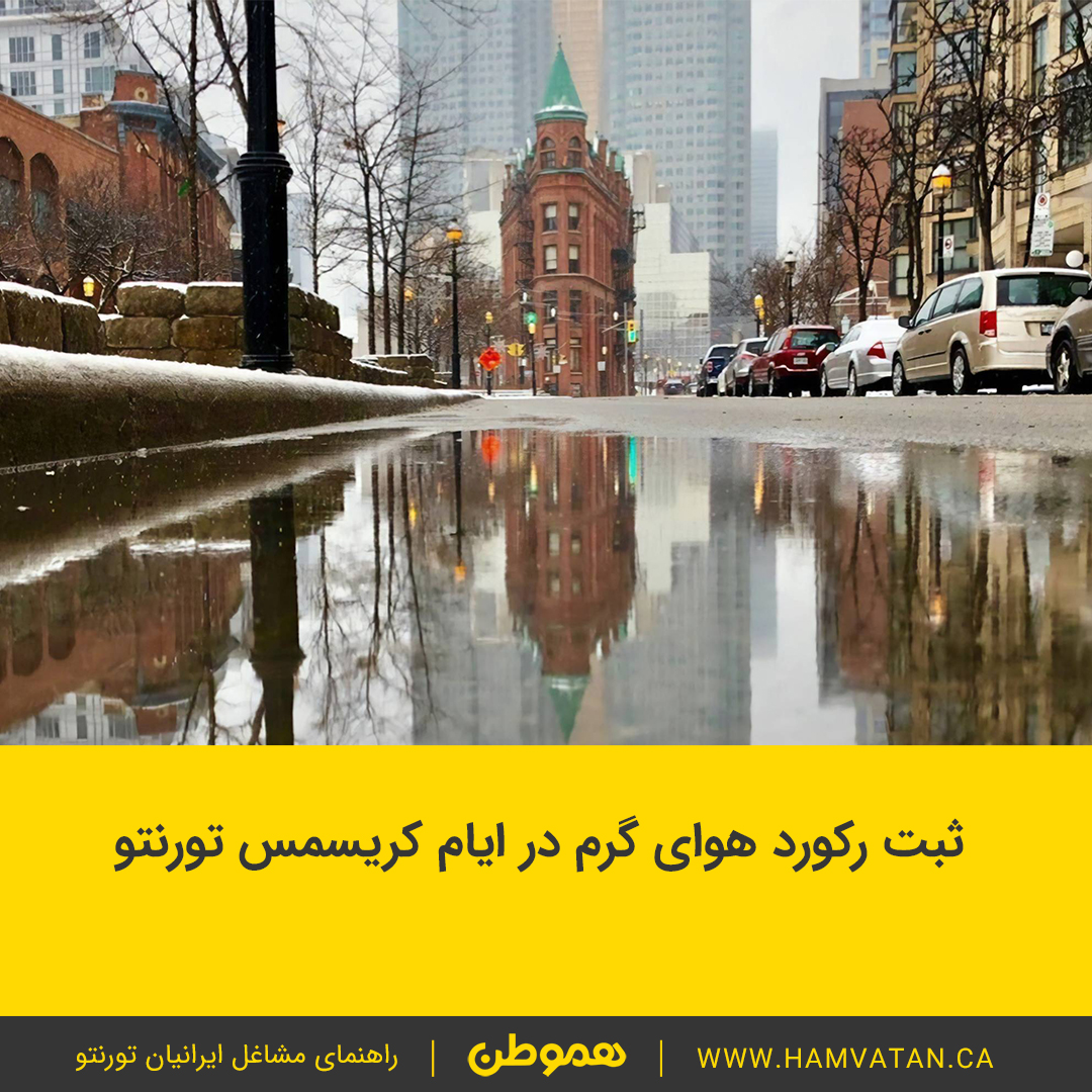 آخرین بار که دمای هوای تورنتو بین کریسمس و سال نو دو رقمی شده، برمی گردد به سال ۲۰۰۸. در آن زمان دمای ۱۰ درجه ثبت شده، در حالی که روز جمعه دمای ۱۰.۶ درجه ثبت شده است. برای روزهای یکشنبه و دوشنبه در تورنتو بارش باران پیش بینی شده، اما دمای هوا حدود ۸ درجه خواهد بود.