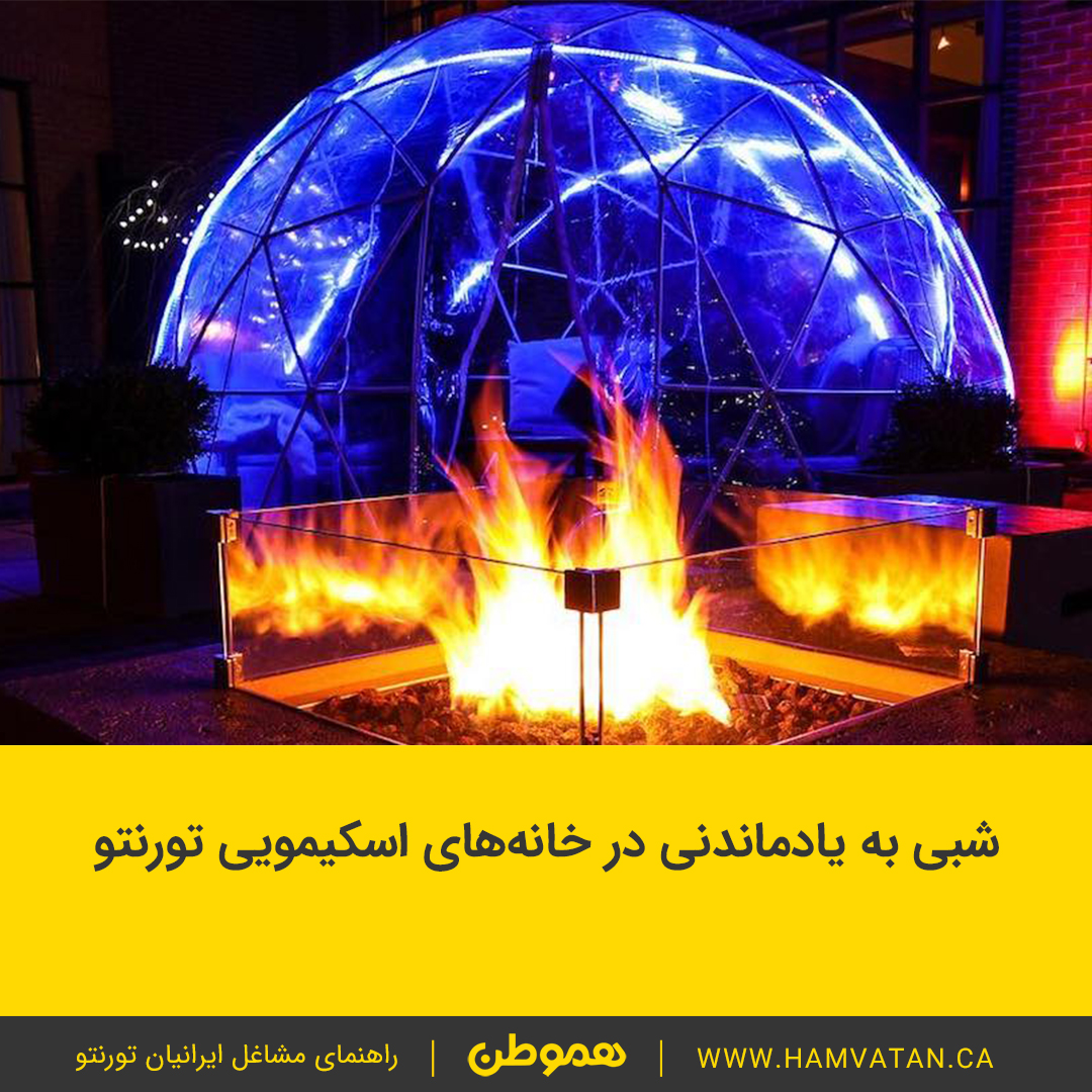 در این شب های سرد و زمستانی تورنتو می توانید به خانه های اسکیمویی بروید و در کنار گرمای دلچسب آن، از لحظات باهم بودن لذت ببرید.