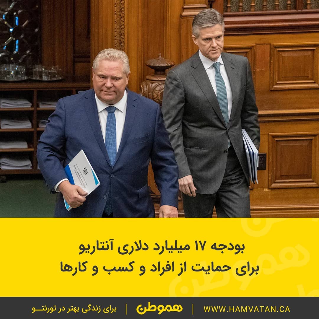 دولت آنتاریو ۱۷ میلیارد دلار بودجه اضطراری برای واکنش به شیوع کرونا معرفی کرد. این بودجه قرار است برای تقویت بخش بهداشت، کمک مستقیم به والدین و معافیت مالیاتی کسب و کارها صرف شود.