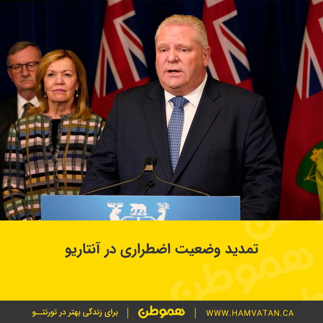 نخست وزیر ایالت آنتاریو، داگ فورد، امروز شنبه از تمدید اقدامات وضعیت اضطراری تا حداقل ۲۳ آپریل خبر داد. مهلت وضعیت اضطراری آنتاریو ۱۴ آپریل به پایان می رسید.