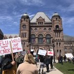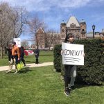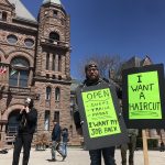 این افراد مقابل پارک کویین تورنتو جمع شده بودند و شعار می دادند: آنتاریو را باز کنید! روی یکی از پلاکاردها نوشته بود: من می خواهم موهایم را کوتاه کنم!