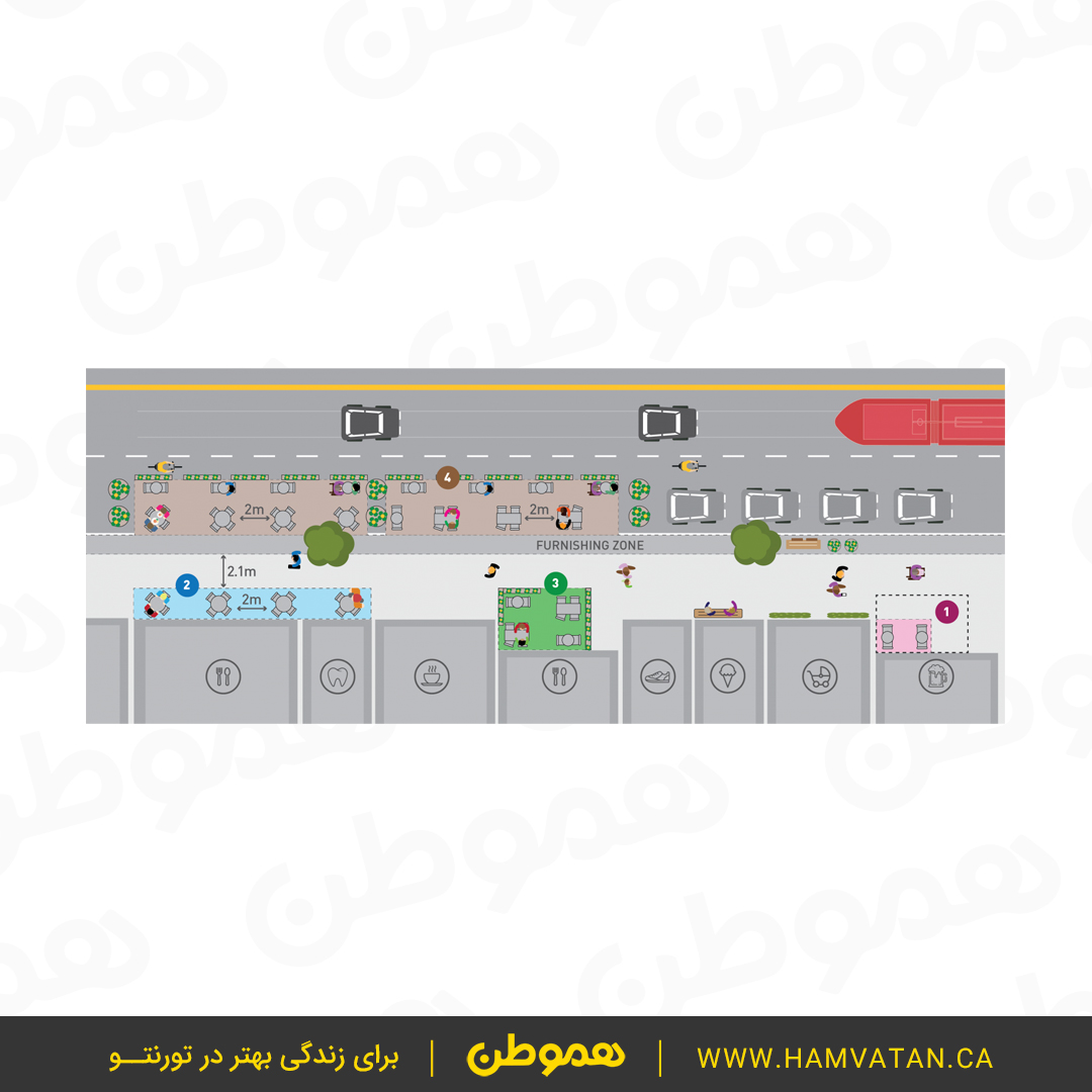 در این طرح رستوران ها و بارها اجازه خواهند داشت فضای بیشتری از پیاده رو و اماکن عمومی اطراف خود را در اختیار داشته و آن را تبدیل به پاسیو کنند.