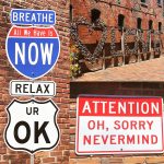 پیام ها به شکل تابلوی ایست، ورود ممنوع و دیگر تابلوهای راهنمایی و رانندگی هستند تا به اندازه کافی جلب توجه کنند.