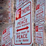 این تابلوها اخیرا در همه جای این محله نصب شده اند و هدف آن ها، انتقال انرژی مثبت به افراد است.