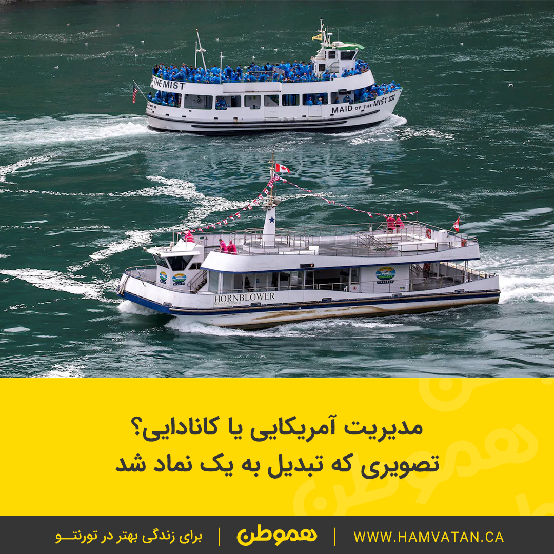 این تصویر لحظه عبور کشتی تفریحی کانادایی را از کنار کشتی آمریکایی نشان می دهد. در حالی که کشتی آمریکایی مملو از مسافر است، در کشتی کانادایی فقط ۶ مسافر وجود دارد.