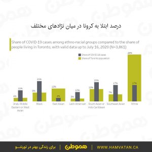 مدیر ارشد بهداشت تورنتو، دکتر De Villa با انتشار این آمار گفت که متاسفانه ویروس کرونا روی افرادی که از نابرابری امکانات بهداشتی رنج می برند، تاثیر بیشتری داشته.