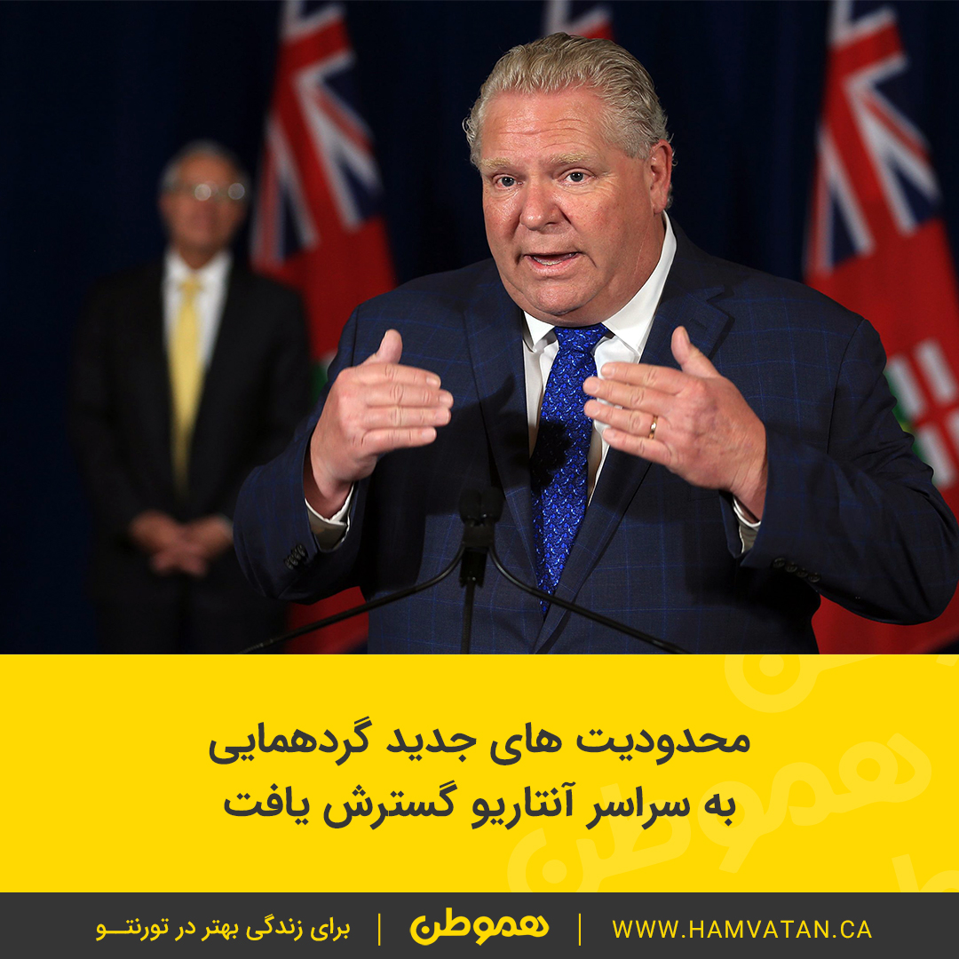 در پی افزایش آمار ابتلا به کرونا در آنتاریو، داگ فورد محدودیت های گردهمایی را در سراسر استان تشدید کرد.