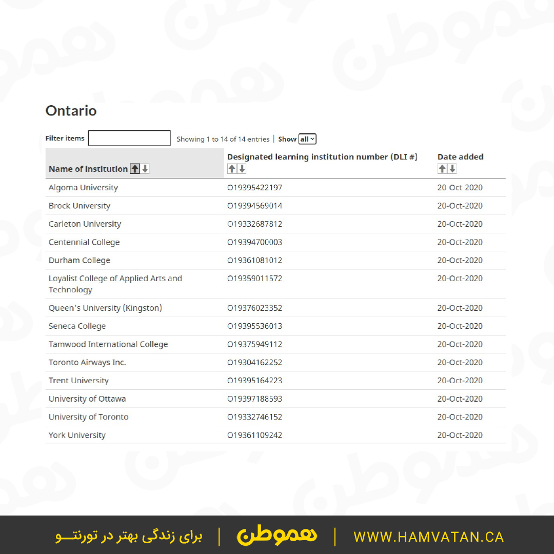 در حال حاضر دولت کانادا فهرست موسسات آموزشی تایید شده را منتشر کرده، اما گفته که امکان تغییر این فهرست هست.