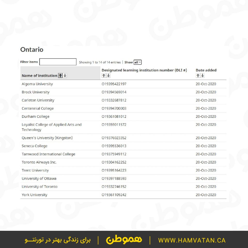 در حال حاضر دولت کانادا فهرست موسسات آموزشی تایید شده را منتشر کرده، اما گفته که امکان تغییر این فهرست هست.