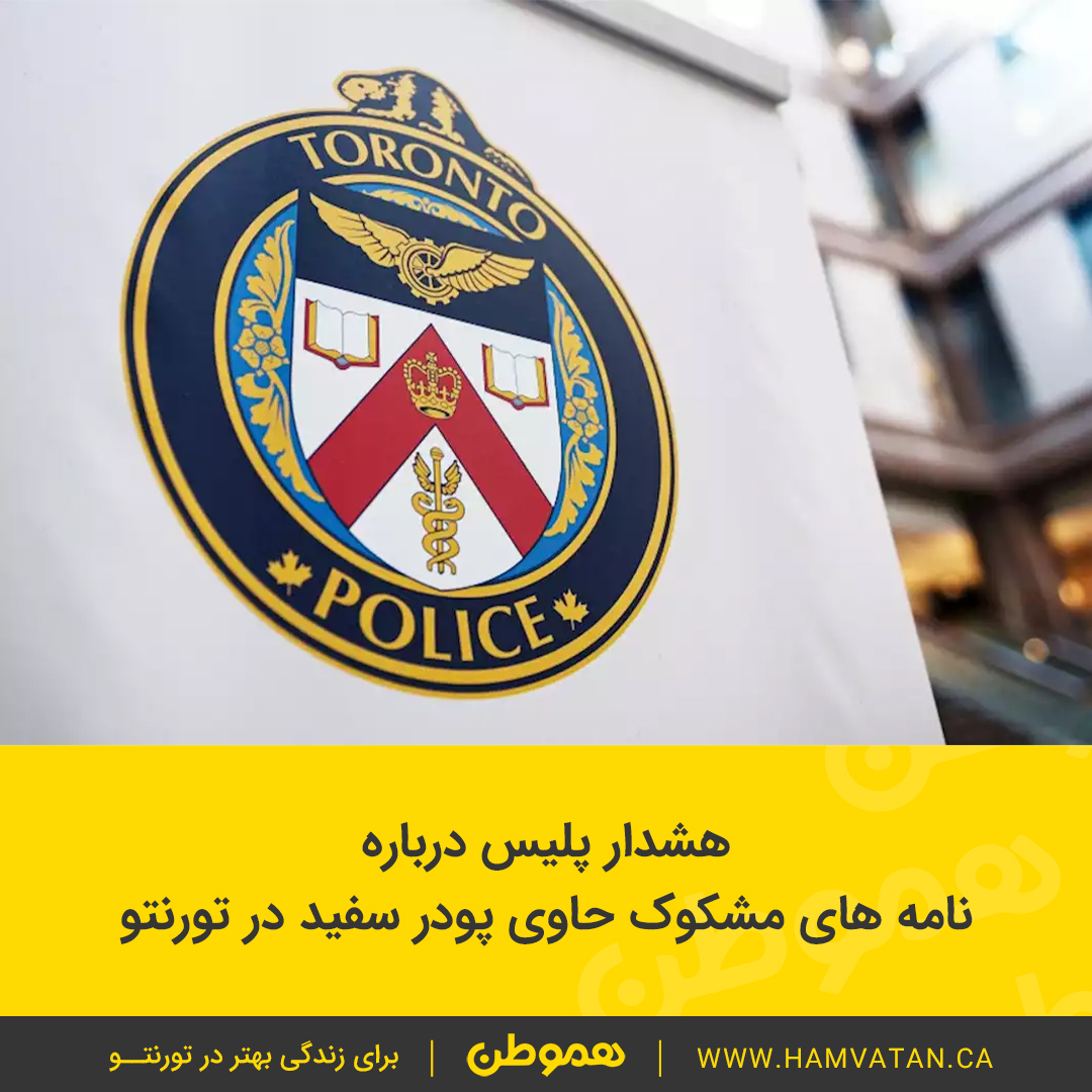 هشدار پلیس درباره نامه های مشکوک حاوی پودر سفید در تورنتو