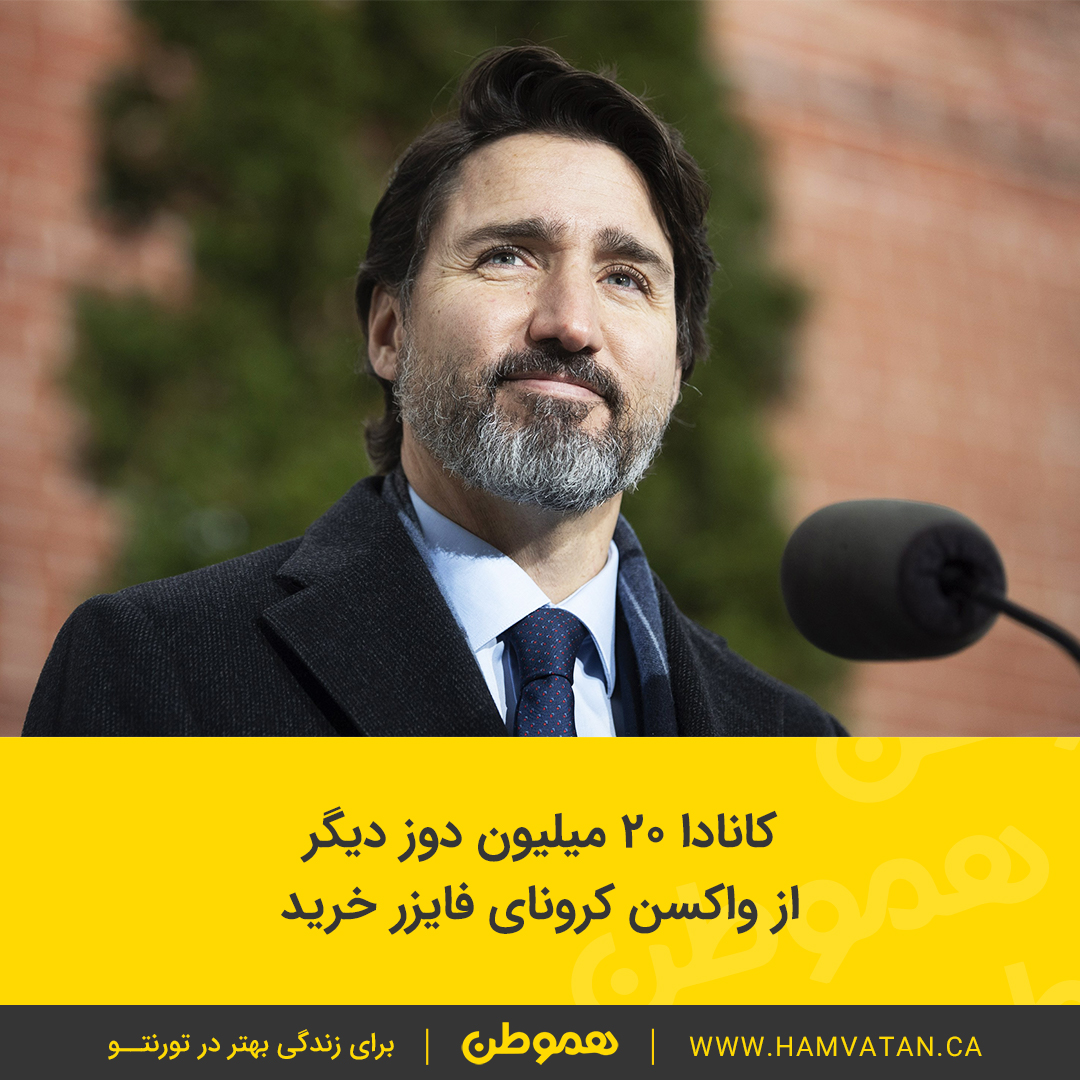 جاستین ترودو اعلام کرد که دولت کانادا ۲۰ میلیون دوز دیگر از واکسن کرونای فایزر سفارش داده.