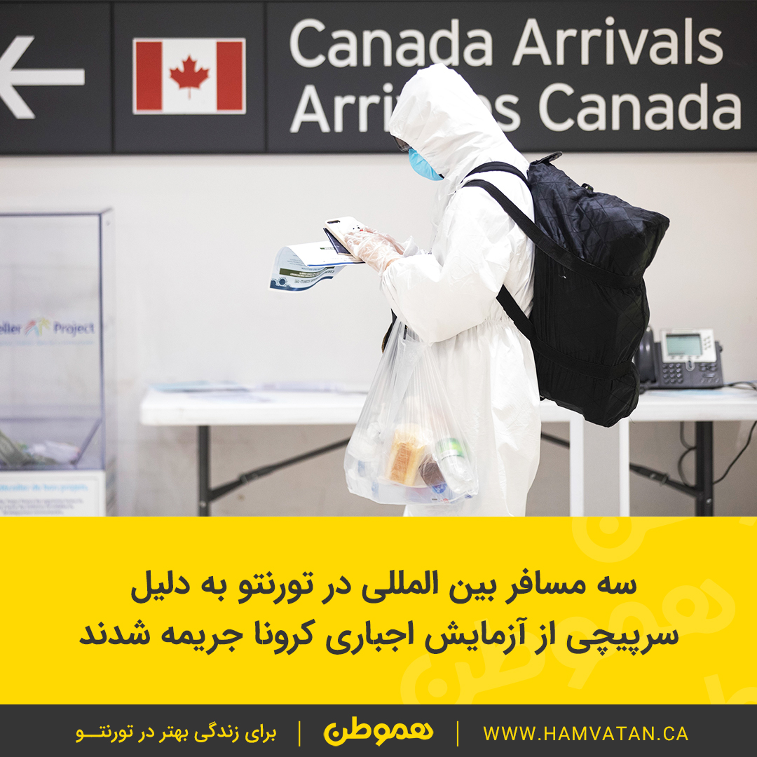 پلیس پیل ریجن تایید کرده که از تاریخ ۱ فوریه تا به امروز، سه مسافر بین المللی به دلیل سرپیچی از مقررات آزمایش اجباری کرونا در فرودگاه پیرسون تورنتو جریمه شده اند.