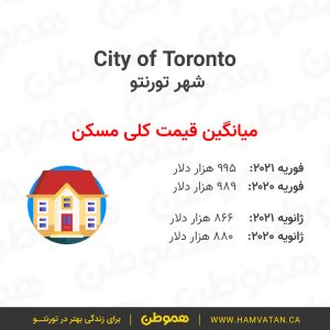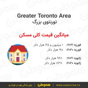 قیمت مسکن در تورنتو و حومه (GTA) در ماه فوریه ۲۰۲۱، برای اولین بار مرز ۱ میلیون دلار را رد کرد و به میانگین ۱ میلیون و ۴۵ هزار دلار رسید.