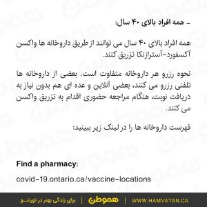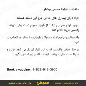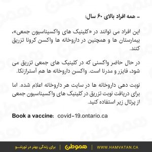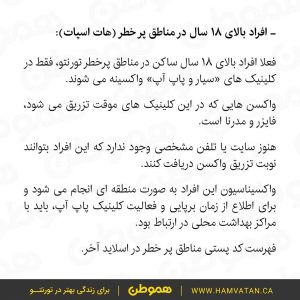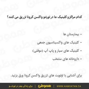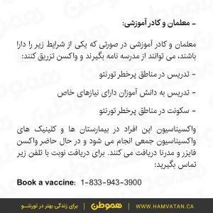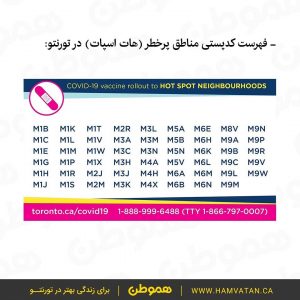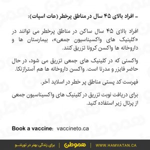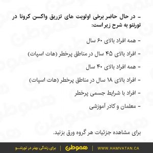 برای اطلاع از شرایط و نحوه واکسیناسیون در تورنتو بر روی تصاویر زیر کلیک کنید.