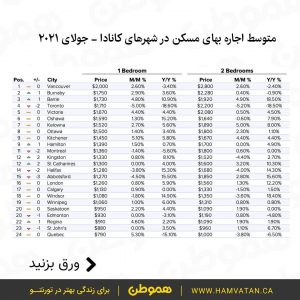 برای مشاهده اجاره مسکن شهرهای دیگر کانادا بر روی تصاویر زیر کلیک کنید.