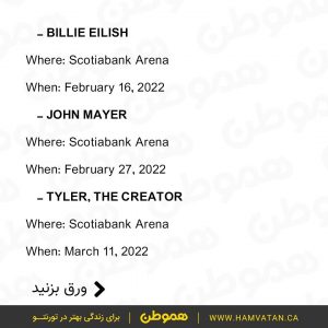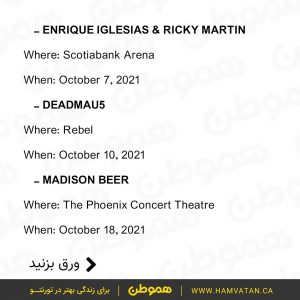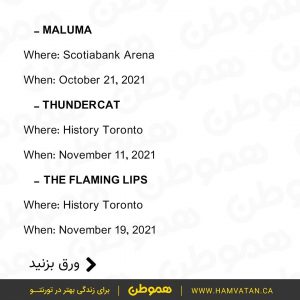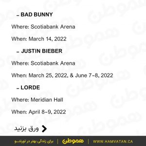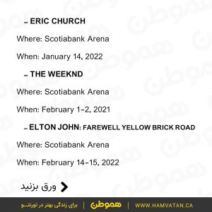 ۲۱ کنسرت بزرگ در تورنتو که طی یک سال آینده برگزار خواهند شد