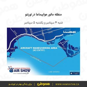 نمایش هوایی بین المللی کانادا قرار است امروز شنبه ۴ سپتامبر و فردا یکشنبه ۵ سپتامبر از ساعت ۱۲ ظهر تا ۳ بعد از ظهر برگزار شود.