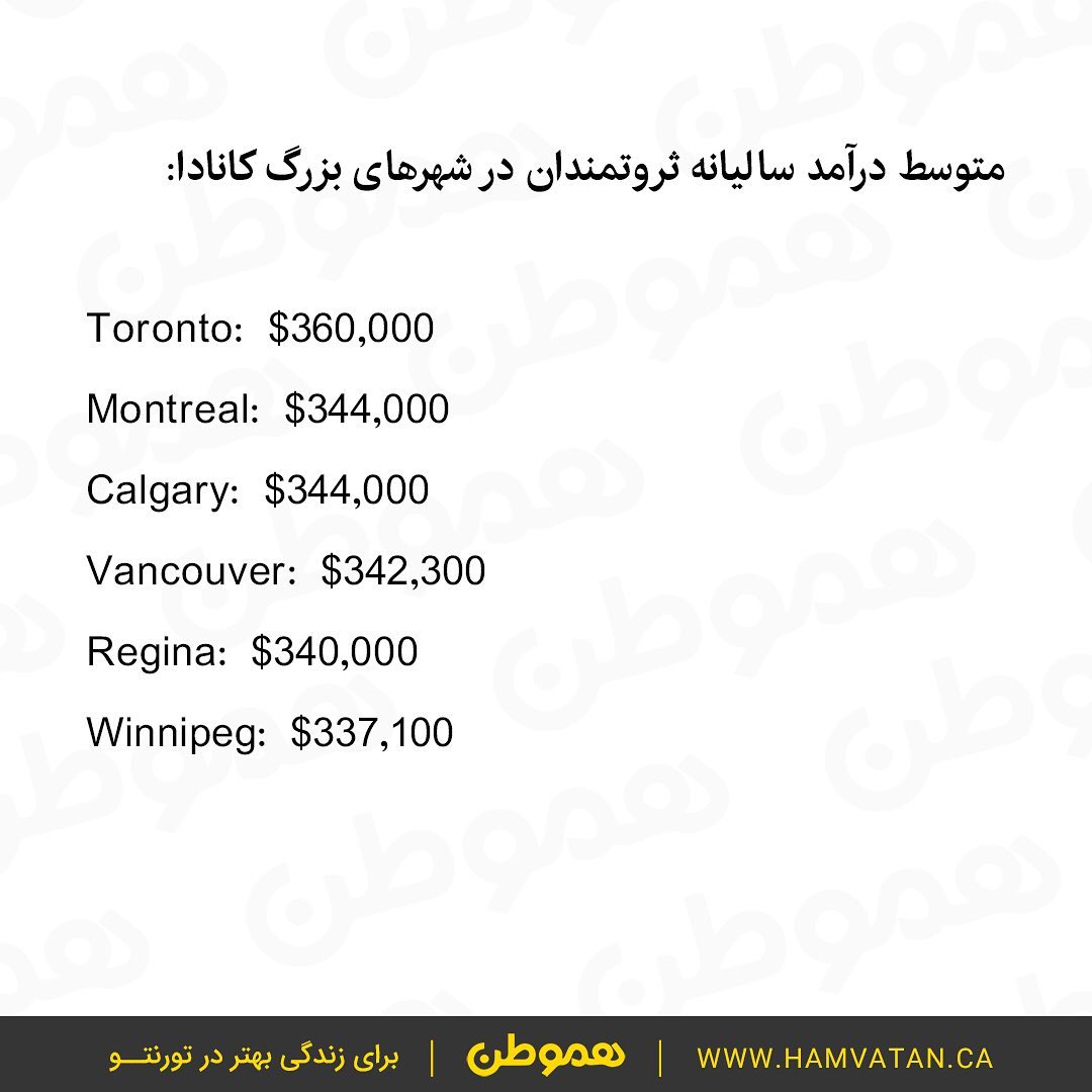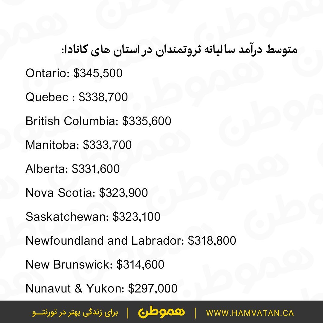 برای مشاهده متوسط درآمد ثروتمندان در استان ها و شهرهای دیگر کانادا بر روی تصاویر زیر کلیک کنید.