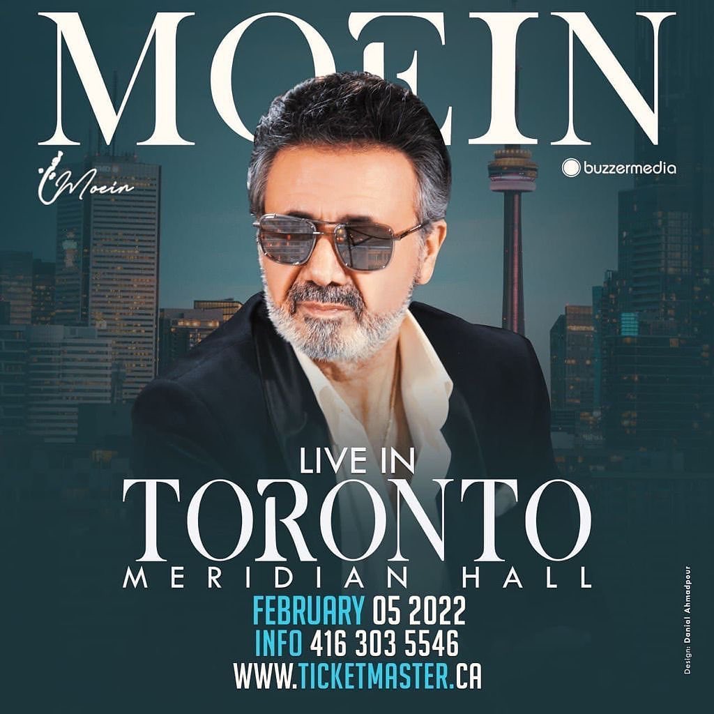 معین روز شنبه ۵ فوریه ۲۰۲۲ در تورنتو اجرای زنده دارد. این برنامه در Meridian Hall تورنتو برگزار می شود.