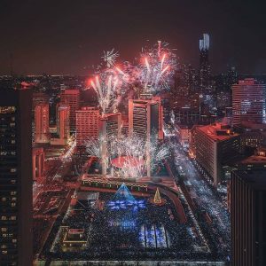 در این مراسم درخت کریسمس رسمی شهر تورنتو با بیش از ۳۰۰ هزار لامپ LED چراغانی می شود.