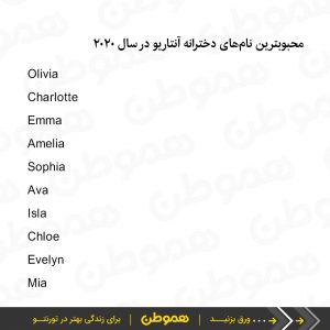 برای مشاهده فهرست ده نام برتر پسرانه و دخترانه سال ۲۰۲۰ بر روی تصاویر زیر کلیک کنید.