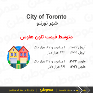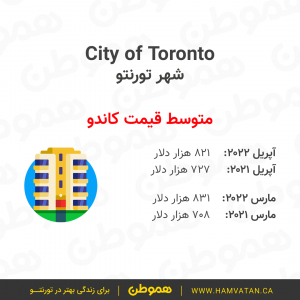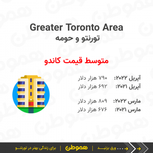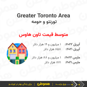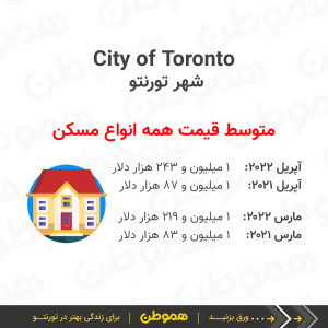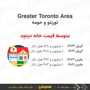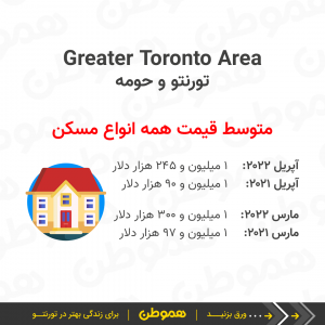 متوسط قیمت مسکن در تورنتو و حومه (GTA) در آپریل ۲۰۲۲ نسبت به ماه قبل کاهش پیدا کرد و از ۱ میلیون و ۳۰۰ هزار دلار به حدود ۱ میلیون و ۲۵۴ هزار دلار رسید.