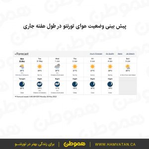 برای مشاهده پیش بینی وضعیت هوای تورنتو بر روی تصویر زیر کلیک کنید.