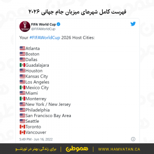 فهرست کامل شهرهای میزبان جام جهانی ۲۰۲۶ را در تصویر بعدی ببینید.