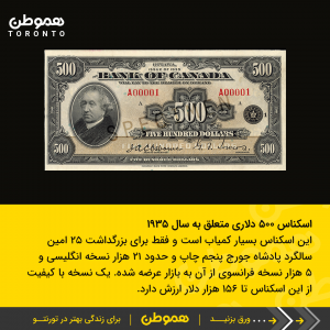 در ادامه ۷ اسکناس کانادایی را معرفی کرده ایم که بسیار با ارزش تر از مبلغ روی اسکناس هستند و ارزش برخی از آنها حتی به ۱۵۰ هزار دلار هم میرسد.