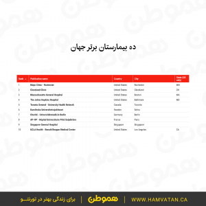 فهرست ده بیمارستان برتر جهان را در ادامه ببینید.