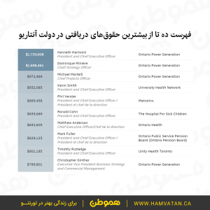 فهرست ده تا از بیشترین حقوق های دریافتی دولت آنتاریو را در ادامه ببینید.