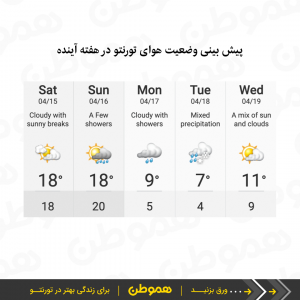 پیش بینی هوای تورنتو در هفته آینده را در تصویر بعدی ببینید.