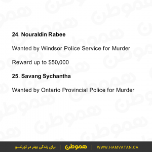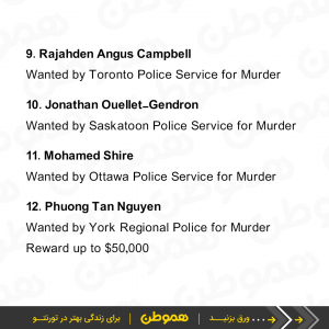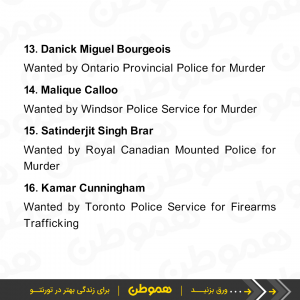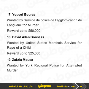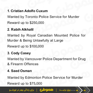 پلیس امروز دوشنبه ۱ می، لیست مهمترین مجرمان تحت تعقیب کانادا (most wanted criminals) را اعلام کرد.