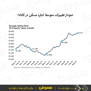 متوسط کلی اجاره مسکن در کانادا (Asking rents) در می ۲۰۲۳ نسبت به سال گذشته ۶٫۵ درصد افزایش پیدا کرده و به میانگین ۲۰۱۴ دلار رسیده.