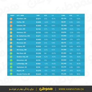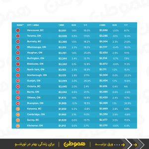 میانگین اجاره در شهرهای اطراف تورنتو و دیگر شهرهای بزرگ کانادا را در ادامه ببینید.
