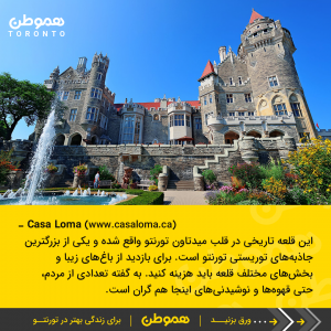 در ادامه ۴ تا از تلههای توریستی آنتاریو را (به انتخاب مردم محلی) معرفی کرده ایم. برای اطلاع از قیمت بلیت و هزینه ورودی به وب سایتهای مربوطه مراجعه کنید.