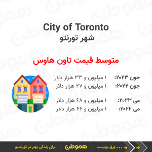 متوسط قیمت مسکن در خود شهر تورنتو (City of Toronto) در جون ۲۰۲۳، میانگین ۱ میلیون و ۱۵۲ هزار دلار بوده.