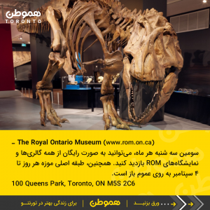 بعضی از روزهای هفته، میتوانید به صورت رایگان و بدون پرداخت ورودی از تعدادی از موزهها و گالریهای تورنتو بازدید کنید.