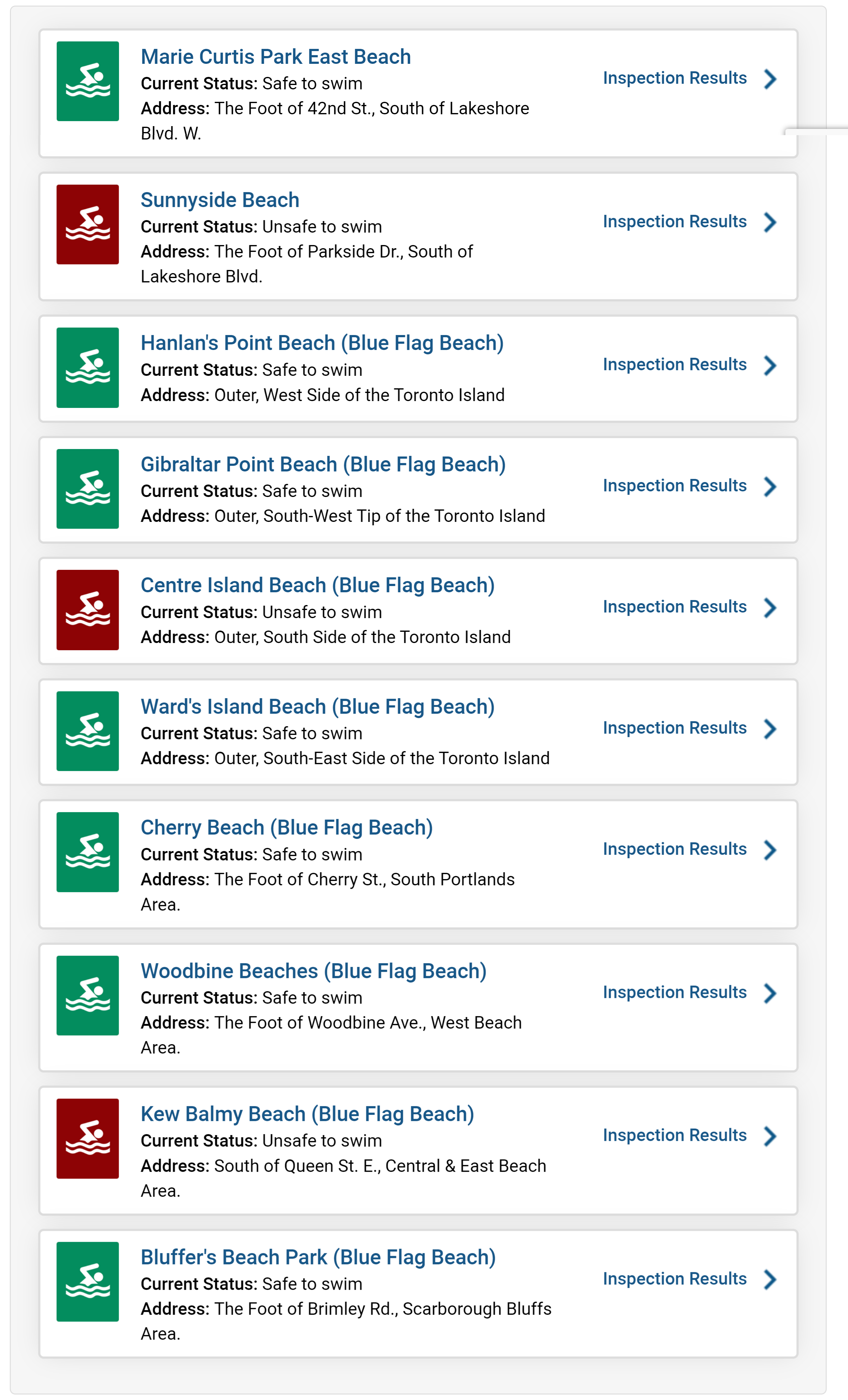 آخرین بروزرسانی کیفیت آب ساحلهای تورنتو (امروز ۲۶ آگست): این آخر هفته ساحل های زیر به خاطر وجود باکتری E.coli برای شنا مناسب نیستند: – Sunnyside Beach – Centre Island Beach – Kew Balmy Beach نوشته شده در 2023-08-26 در دسته بندی خبرهای کوتاه