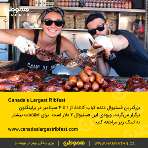 بزرگترین فستیوال دنده کباب کانادا، از ۱ تا ۴ سپتامبر در برلینگتون برگزار میگردد. ورودی این فستیوال ۲ دلار است. برای اطلاعات بیشتر به لینک زیر مراجعه کنید: